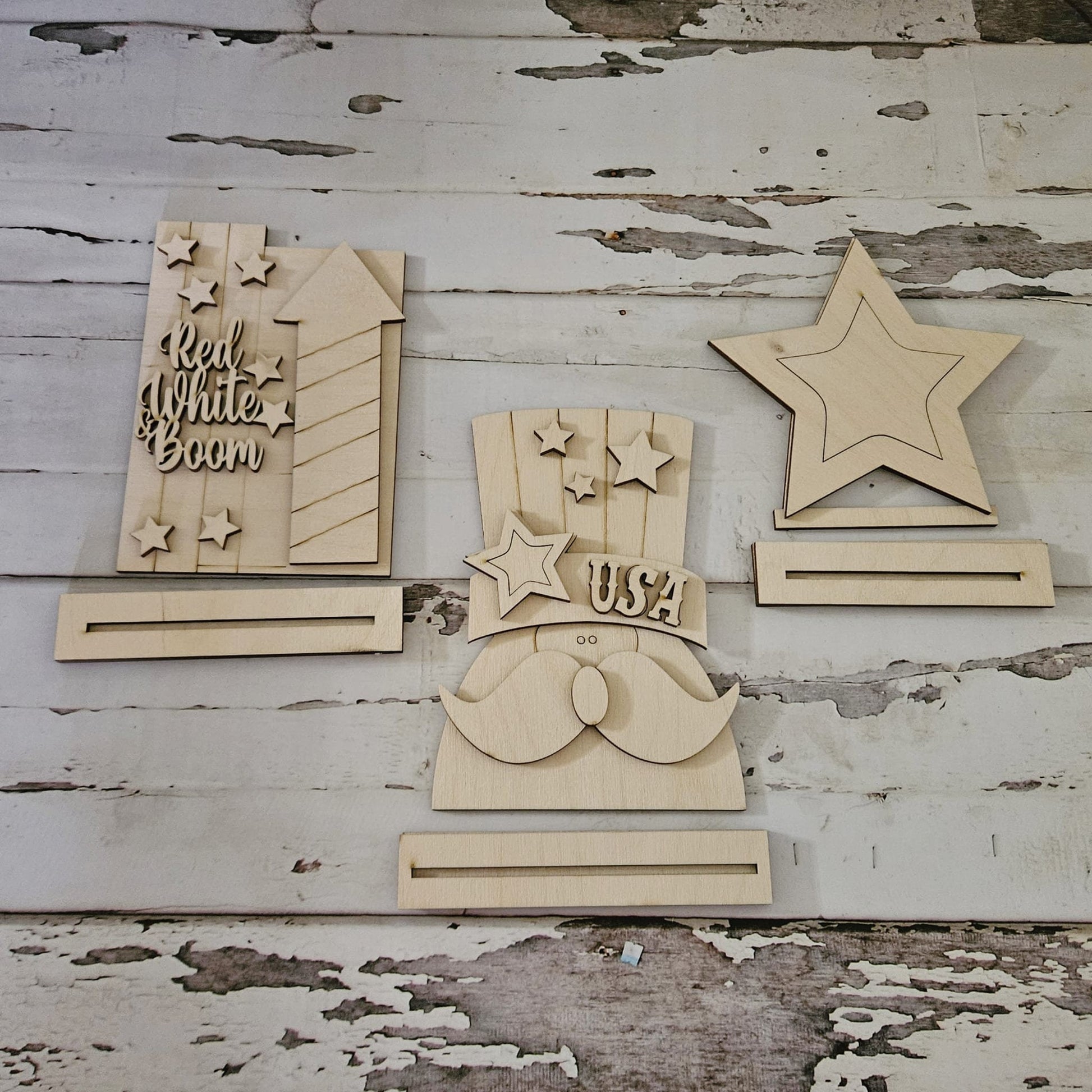 4th of July Gnome Wood Blank, DIY Tiered Tray Decor Shelf Sitter