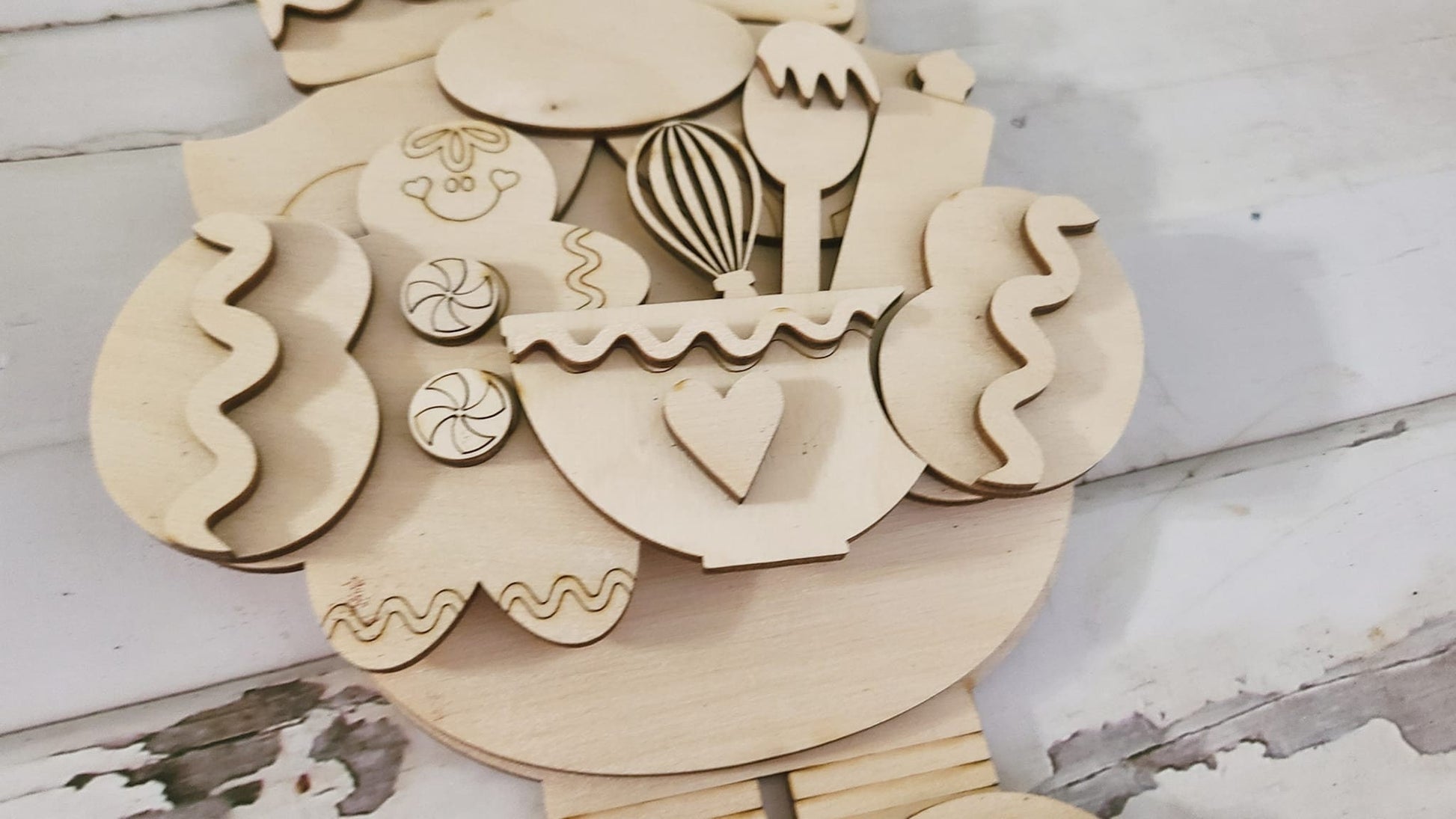This shelf sitter is unpainted and unglued. This includes all signs shown.