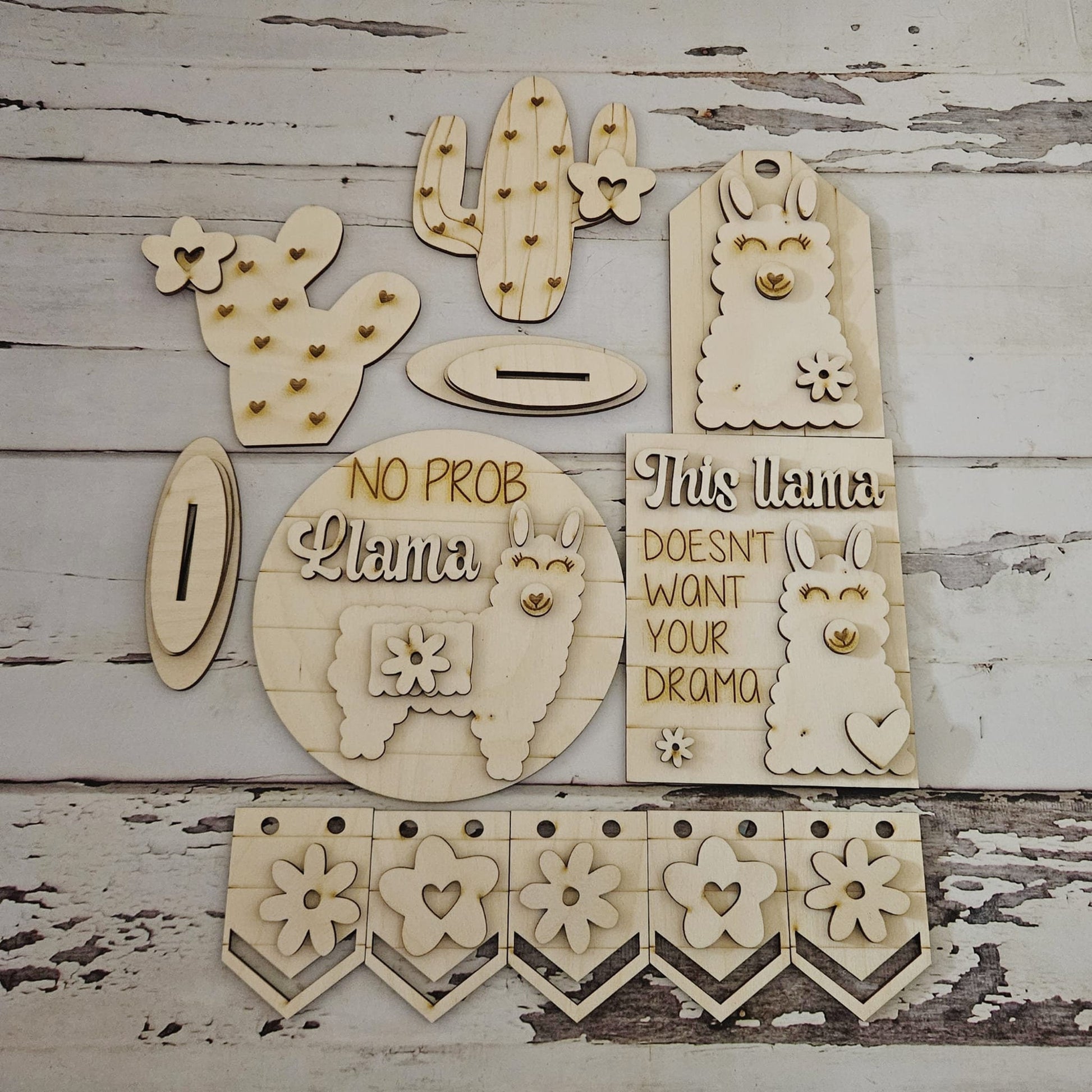 Llama Tiered Tray DIY Wood Blank Kit - Cactus and Banner